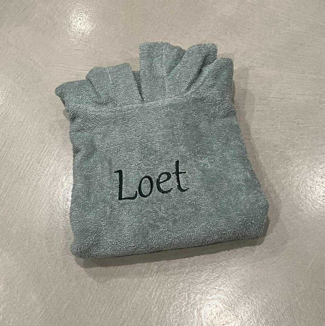 Laat je kindje genieten in deze schattige badponcho in de kleur Stone Green, ontworpen voor kinderen tot ongeveer 6 jaar. Deze badponcho houdt je kindje warm en droog na het zwemmen of tijdens een dagje strand. Dankzij de handige capuchon blijft het hoofdje ook lekker warm, terwijl de losse pasvorm zorgt voor bewegingsvrijheid. Ideaal voor als ze tussendoor iets lekkers eten! Leuk om cadeau te geven tijdens een verjaardag. Of uiteraard voor je eigen kindje! Personaliseer de badponcho door de naam of geboortedatum van het kindje te laten borduren en maak het extra speciaal.